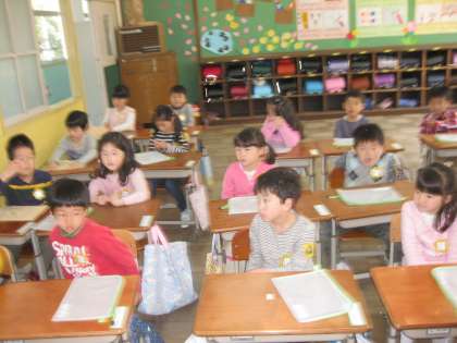 1年生 しっかりと先生のお話を聞いています