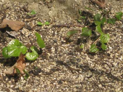 昨年,植樹したフタバアオイは何回も積もった雪にも負けずにしっかりと緑の葉をつけています。しかし,もう直射日光があたっています。もともと日陰で成長する植物ですので,今後がちょっと心配です・・・