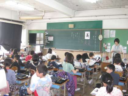 4年生が,今年度初めて習字に取り組んでいました。とても集中していて,話し声が全く聞こえませんでした。