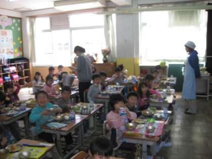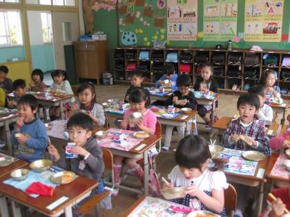 「おいしい!」と言いながら,どんどん食べています。とってもたくましい1年生です。