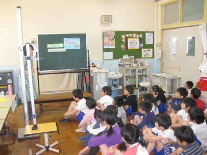 保健室では,身体測定の前に養護教諭の加納先生から保健学習を受けていました。今日は,薬の学習でした。