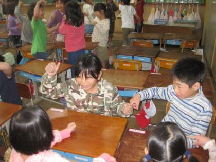 2年生の教室では,学年のはじめということもあり,なかまづくりゲームの真っ最中でした。とっても楽しそうにゲームをしていいました。