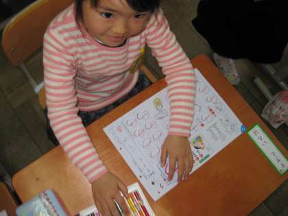1年生は,今ゆっくりと文字を習っています。何となく書けていたつもりですが,ちゃんと形をとることは,とっても大事です。どの子も一生懸命に書いていました。