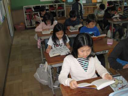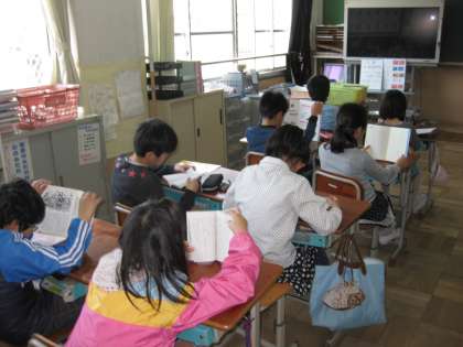 5年生の教室では,爽やかな朝のひととき,静かに本を読んでます。