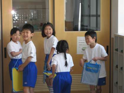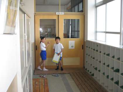 2年生が学校探検の準備を始めています。学校にたくさんある特別教室も1年生に教えます。そこの部屋におられる人にインタビューをしたり,教職員がおられない部屋は,どんなものが置いてあるかなどをしっかりと観察しています。