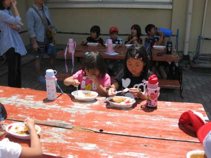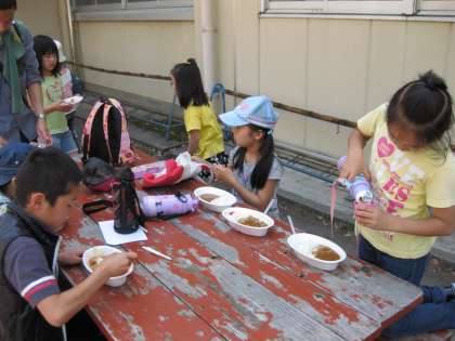 たくさん歩いたのでおなかが減りました。カレーライスは,美味しくて何倍もお代わりした人もいました。
