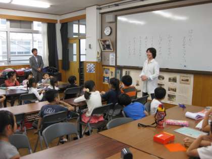 放課後まなび教室がスタートしました。今日は,開校式ということで,京都市教育委員会生涯学習部 放課後子どもプランコーディネーターの宮地 功先生においでいただき,お話をしていただきました。