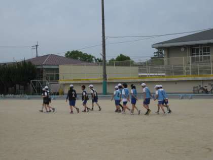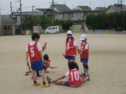 5年生が,先生が来られるまでに自分たちでリレーの練習方法について話し合っていました。一人一人が勝手な行動をするのではなく,グループで集まって上手に話し合っていました。感心!感心!