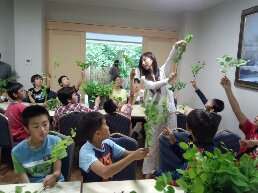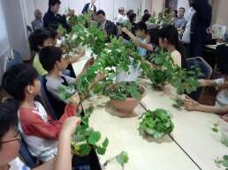 本年度も,葵祭で使う葵飾りを上賀茂神社に作りに行きました。放課後に用事のない6年生がおよそ40名参加させていただきました。全国に知れ渡る大きなお祭りのお手伝いができるなんて,とっても素晴らしい貴重な体験ですね。
