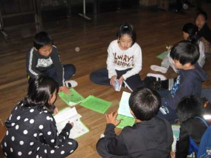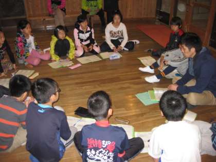 一日の最後の活動 班会議です。今日の活動を振り返ったり 明日はどんな活動があるのかを確認したり 班のみんなの体調などを確認したりする活動です。