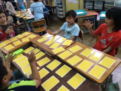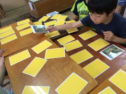 図工の時間にアートカードで絵合わせゲームをしました。