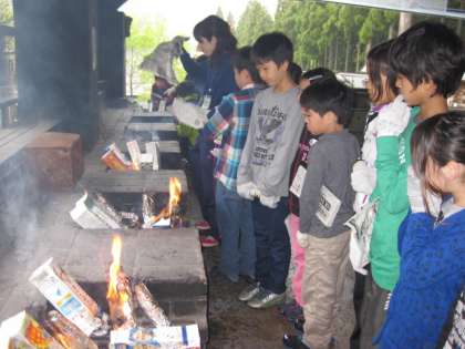 花背山の家13 朝の集い・パックドッグ