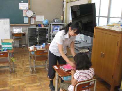 1組は,紙粘土を使って,小物入れづくりをしていました。上手にできそうです。2年生は,交流学級にいって非行防止教育を受けています。