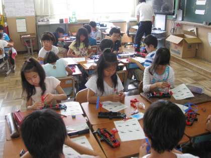 4年生の2時間目は理科で「電池のはたらき」を学習しました。電池を並列つないだ時と直列につないだときの違いについて,予想して実験をしました。