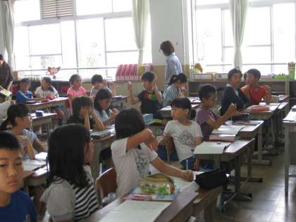 5年生は,算数で「同じものにめをつけて」という単元を学習しています。結構難しいですが,線分図を書くなどして,みんな頑張って問題を解いていました。
