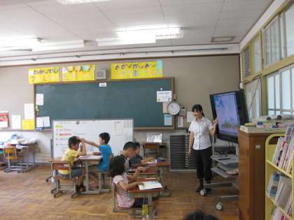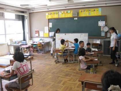 3時間目です。交流学級にいっていたお友達も帰ってきて,国語の学習をしています。今日は「よみかきを たのしもう」です。
