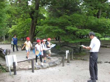このポイントでは,元京都市の校長先生,そして上賀茂神社の権禰宜様までおいでいただき,説明をしていただきました。