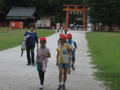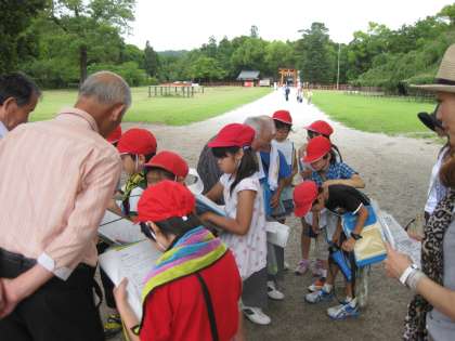 上賀茂神社の鳥居前です。ここのポイントは,観光客の方が多かったようで,その方たちがたくさん質問されてきたようです。大変でした。