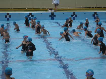 でも今日は,2年生と1年生と1組の割り当てですのでそんなに水深は深くないです。
