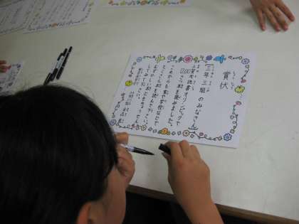 図書委員会が,読書週間の取組としてすすめていた『読書オリンピック』の結果が出たようです。今日は,その結果によって賞状を書いていました。あるクラスは,1000冊をこえたようです。すごい読書の量ですね。