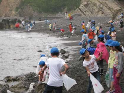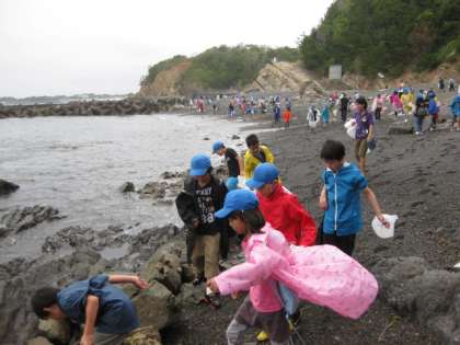石だけではなく、貝殻もいっぱい見つけました。中にはタカラガイの貝殻を見つけた子もいました。大事そうにビニール袋にしまっていました。