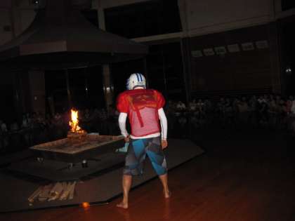 いよいよキャンプファイアが、始まりました。すると、突然とび入りが・・・・・!