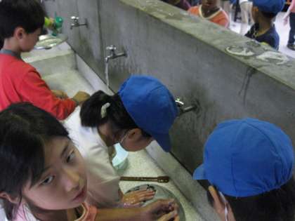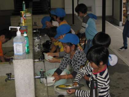 さて、後片付けです。最後まで野外炊事です。さて、みんなで協力して後片付けができたでしょうか?