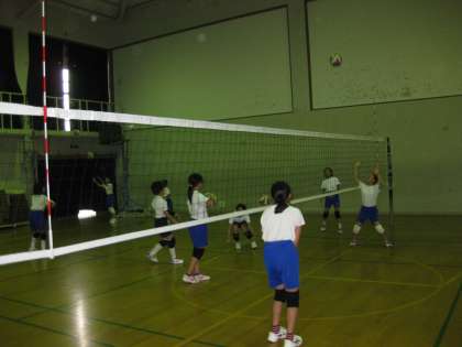 体育館ではバレーボール部が熱心に練習をしていました。基本的なパス練習をしているペアーや,アタックをレシーブしているペアーなど,自分たちの力にあわせて練習をしていました。もうすぐ北区の部活の交流会があります。それに向けて頑張ってください。