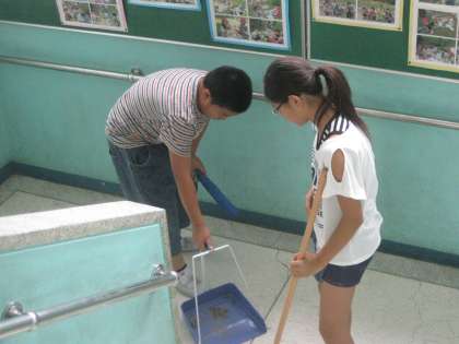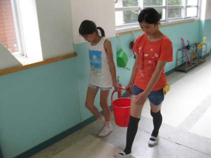 一人でもてないバケツも友達と協力して水替えをしました。また,男女協力してゴミ集めをしっかりとしました。