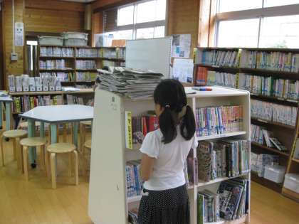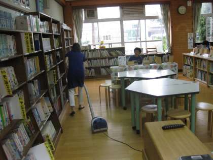 図書館の当番の子は,何となく得したような感じかな?床は,支援員の川原先生が掃除機を使って綺麗にしていただいていました。当番の人たちは,修理が必要な本を見つけていました。