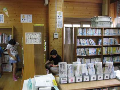 今日も,図書館に地域の山田様がボランティアとしておいでいただいています。子ども達がこないときは本の整理や修繕をしていただいています。本当にありがとうございます。