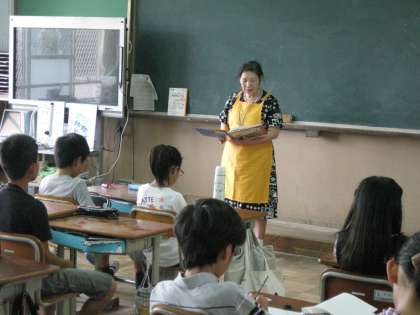 今日はPTAのほほんクラブの読み聞かせの日です。OBの方々もおいでいただき,子ども達に本の読み聞かせをしていただいています。