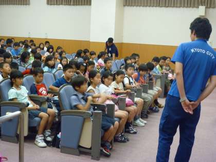 社会科の学習で清掃工場に見学に行きました。まず,ミーティング・ルームで基本的なお話を聞きました。