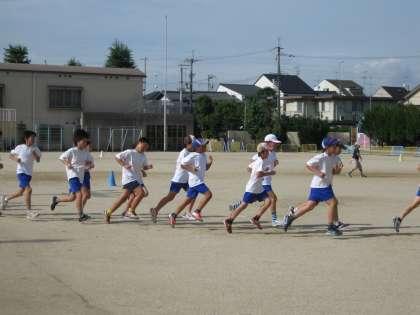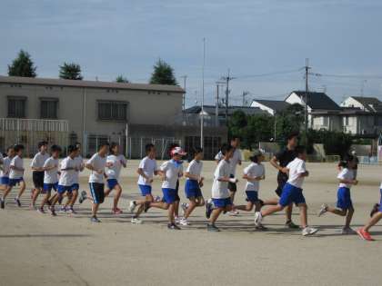台風の影響で朝からとっても蒸し暑い日になりましたが,5・6年生50人ぐらいが,頑張って走っていました。担任の先生方も一緒にを走っています。ご苦労様です