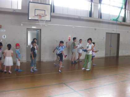 体育館の中では,くつ飛ばしと豆つかみをしていました。最近の子ども達は,あまりくつ飛ばし(天気の予想をするため,よくしたものです)をしたことがないのでしょう。なかなかうまく飛びませんでした。