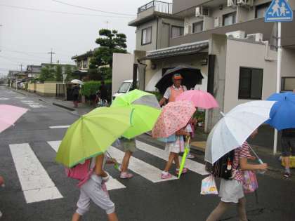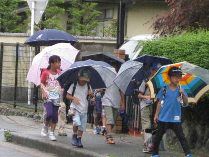 今日は,朝から雨が降っていたので傘をさしての登校です。台風の勢力は弱くなりましたが,これから雨や風が強くなってくるという予報です。