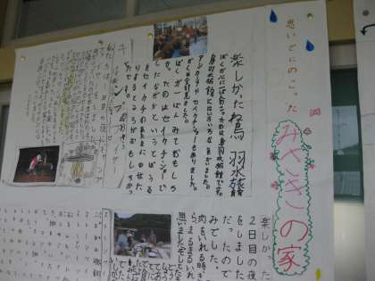 3年生の教室の前に,みさきの家のことをまとめた新聞がはってありました。きっと,来年みさきの家に行く3年生に『どんなところか』『何が楽しかったのか』というようなことを,4年生が新聞にして,教えてあげているのでしょう