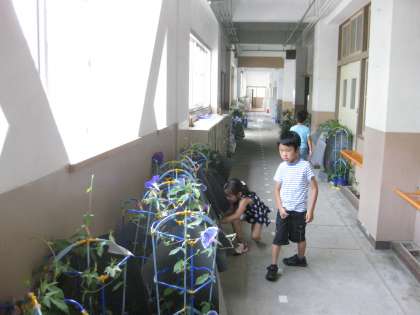 廊下が水浸しになっています。聞いてみると,登校してくるなり水やりを廊下でしたようです。よっぽど心配だったのですね。