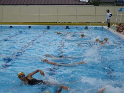 午後からは6年生の水泳学習です。今年は,25mを泳げない子はいないそうです。確かに,みんな泳ぐだけでなく,フォームも美しいです。