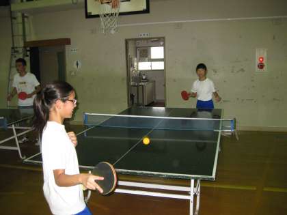 金曜日の体育館では,卓球部とバスケットボール部が暑い中練習を頑張っていました。卓球部では,今年から入った子ども達が基礎練習を,続けて入っている子ども達は,卓球台を使ってラリーの練習をしていました。
