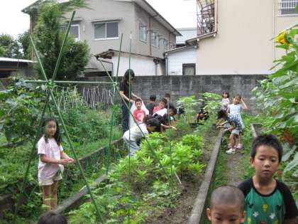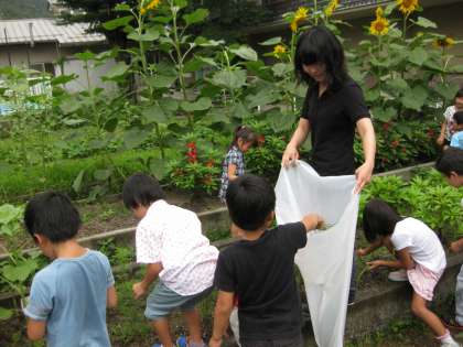 体育館西側の畑でも1年生が,頑張って草抜きをしていました。なかなか根っこから綺麗に抜くのは難しいようです。