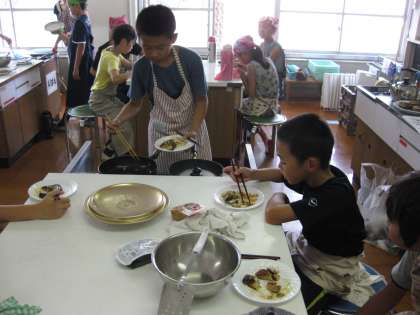 いよいよ試食です。ちょっとナスが苦手な子もいたようですが,大好評でした。地元の京野菜を学校で試食できるのは,とっても嬉しいことです。