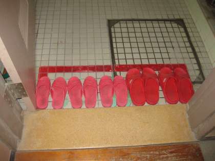 南校舎1階の女子トイレです。ここは,色々な学年が使います。なかなか綺麗にそろっているのを見たことがありませんが,今日はとっても綺麗にそろっています。誰かがそろえてくれたのかな。