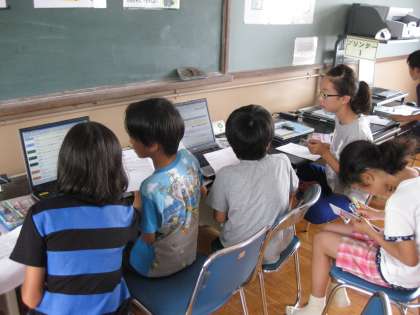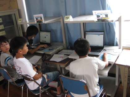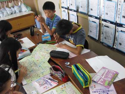 6年生が,夏休み明けに市バスの1日乗車券を使って,社会科の歴史学習の一環として市内を回ります。今日は,その時のためにインターネットや市バス路線図をみて計画を立てていました。さて,無駄なくうまく多くの名勝や歴史的建造物を見て回れるでしょうか。楽しみですね。