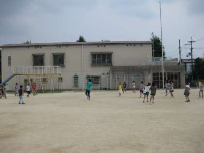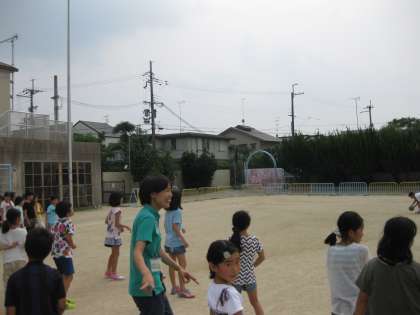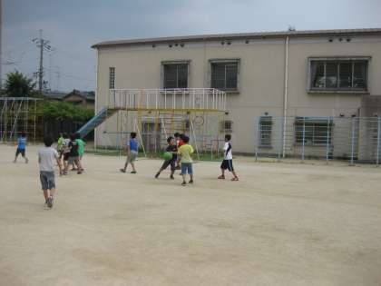 3組と4組はドッジボールです。なぜか両方のクラスとも男女対決でした。担任の先生は女子チームです。