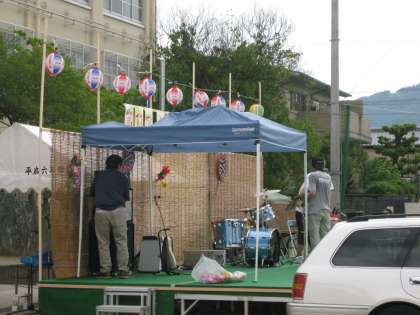朝から雨が降ったりやんだりして,うっとしいお天気ですが,夏祭りの準備は,着々と進んでいます。