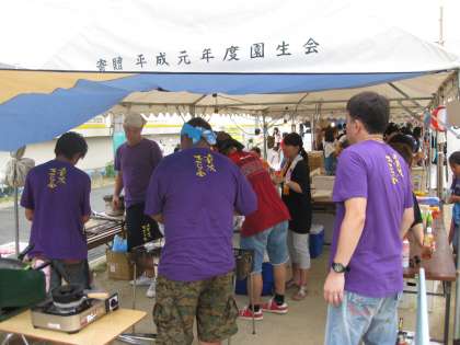 おやじの会は,いつも「焼き鳥」と「きもだめし」が復活しました。現在,入場券を配っておられるところです。