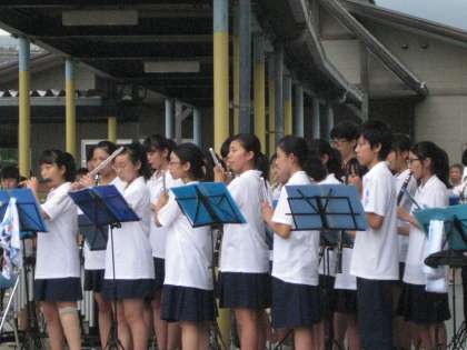 加茂川中学校のブラスバンド部が,上賀茂夏祭りにかけつけてくれました。今日は,コンクールがあったそうです。結果も気になるところですが,元気よく演奏をしてくれました。毎年,出演してくれてありがとうございます。上賀茂小学校の卒業生も17人いるそうです。
