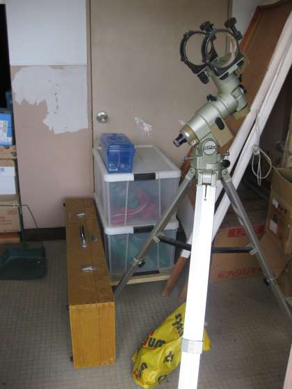 本日予定されている「土星・月の観察会」は,雲行きが大変悪い予報です。梅辻先生のお話によると,土星の輪がとても綺麗に見える時期だそうです。しかし,準備はできています。3時頃に先生が来られて,天体望遠鏡の三脚の部分などを組み立ておわりました。160人ほどのみんなが期待しているのですが・・・・・・。