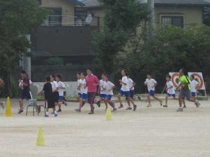 今日も朝から,部活の陸上部が練習に励んでいました。5・6年生の自主参加者も含めて多くのメンバーで練習をしています。人数が多いと,お互いに刺激しあって励みになります。